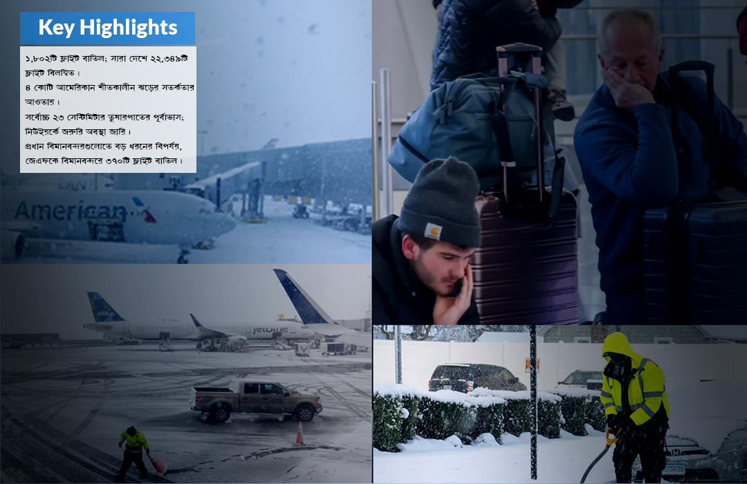 শীতকালীন ঝড় ডেভিনের প্রভাবে যুক্তরাষ্ট্রে ১,৫০০-এর বেশি ফ্লাইট বাতিল